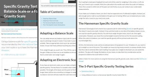 Using a balance scale to test specific gravity is a recommended practice in gemology. Learn to make your own scale or buy a Hanneman Specific Gravity scale.