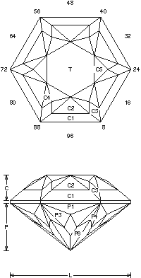 Addition # 1 - This design cuts fairly normal except for the step on the crown, which needs to be watched for size. It makes a nice stone in any material, I like it in light colors, 1-8cts. Cut in refractive indexes 1.62 to 1.93 (83.6%) with no changes.