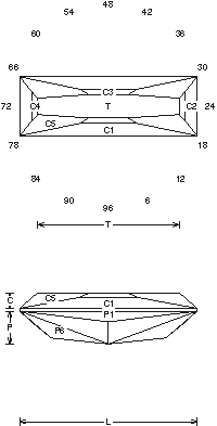 Addition # 3 - Cut a 3.0 L/W preform. I get tired of cutting steps in long Tourmaline crystals, so here is what I do. The crown can be cut as low as 32 (subtract 10 from each of the crown tiers). Open "c" is best, 1-18cts.