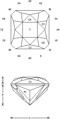 Helpful tips, details and guide on Faceting Designs. Faceting Design Diagram by Jeff R. Graham that presents various cuts, this one is called "Swiss Square"