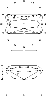 Addition # 4 - If you are cutting in Tourmaline, be sure that the "c" axis is close in color to the a/b or this design will get muddy. The keel on this is harder than it looks, it works well in Topaz, 1-12cts. Cut this in R.I. 1.62 to 1.76 (82.4%) without changes.