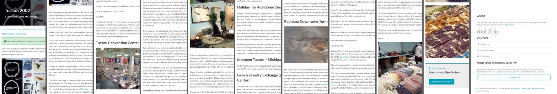 This year we asked our members for their impressions of the Tucson show. Below are their impressions. For those who have never made it to the Tucson extravaganza, this should give you a good idea of what it is like.