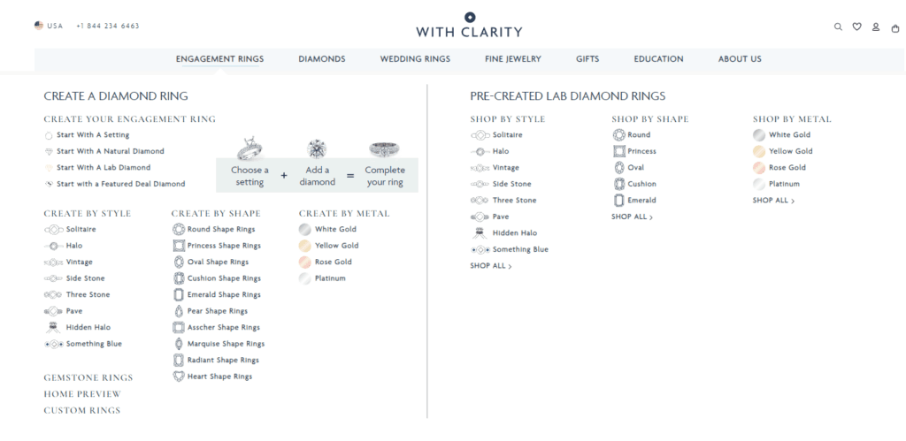 With Clarity sells both natural and lab-created diamonds, two options you can toggle between on their diamond search tool. And they make it very clear throughout the buying process which kind of diamond you're looking at, so you're never confused.